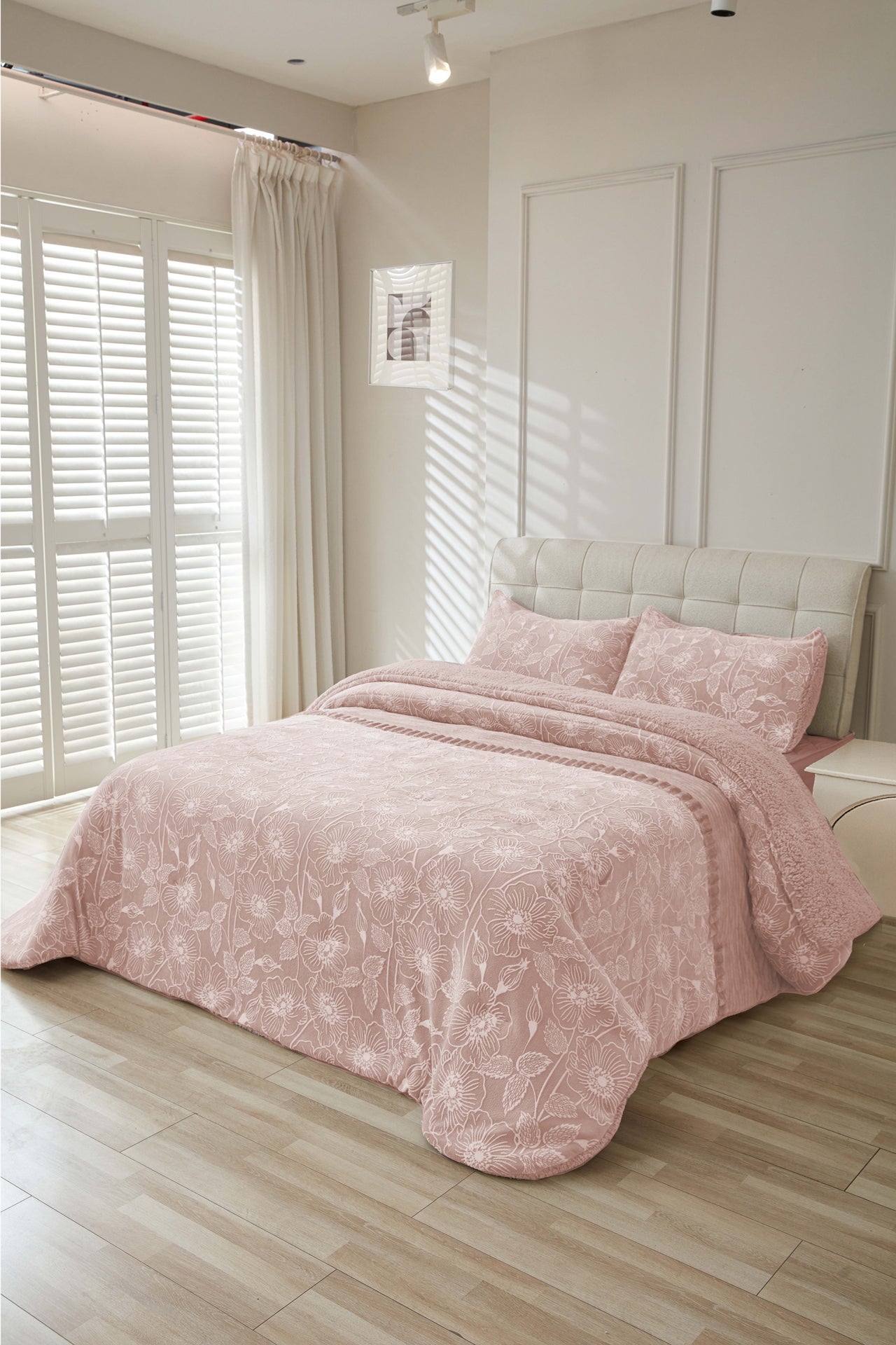 Com um padrão florido elegante e um acabamento luxuoso em veludo macio, este edredão combina beleza, suavidade e calor para noites perfeitas de descanso.