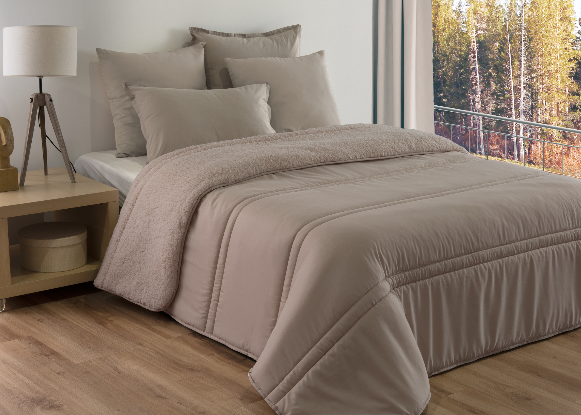 Edredom Liso Bege Escuro com Pelo de Borrego