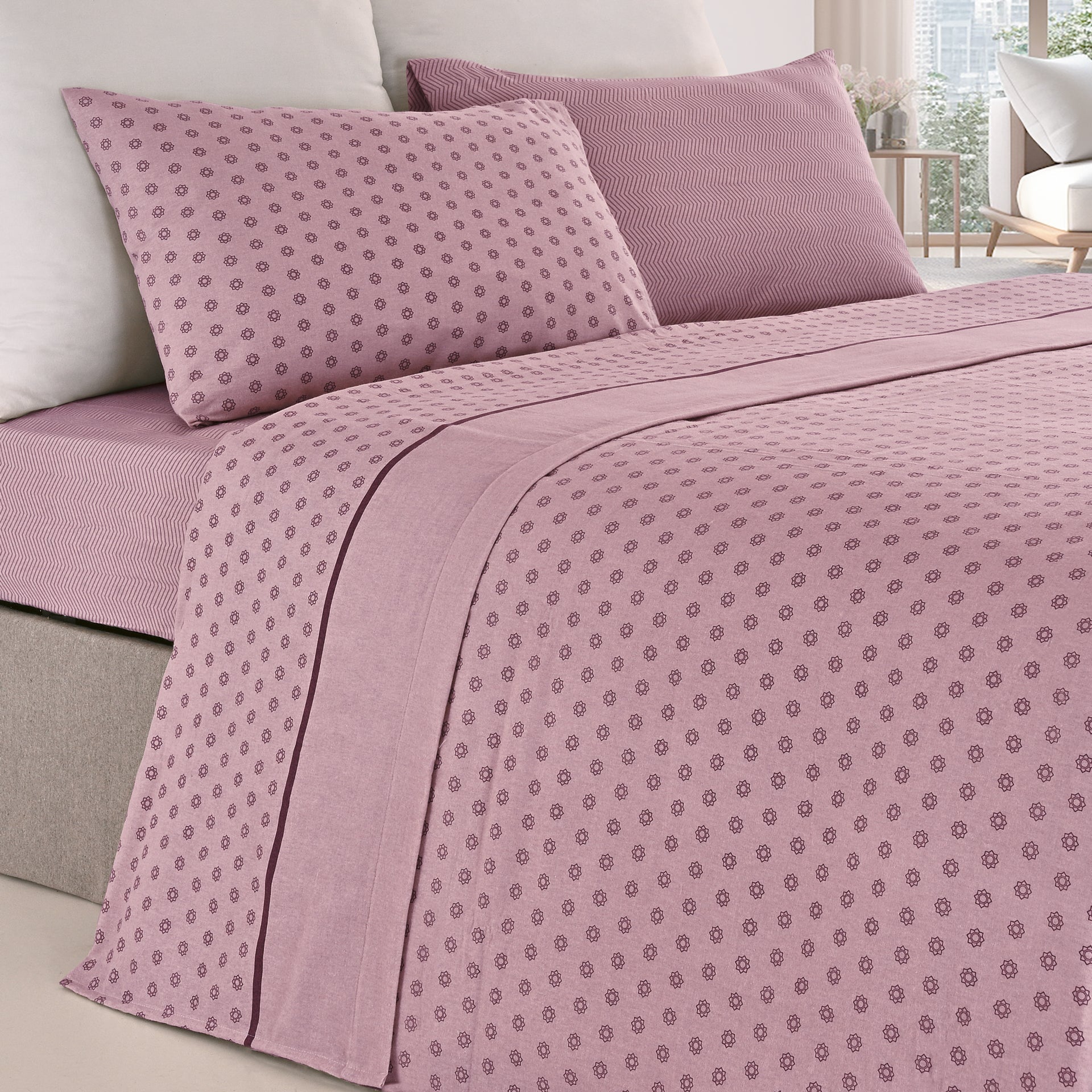 A flanela de algodão oferece um toque macio, quente e respirável — perfeita para garantir noites de sono confortáveis e relaxantes.