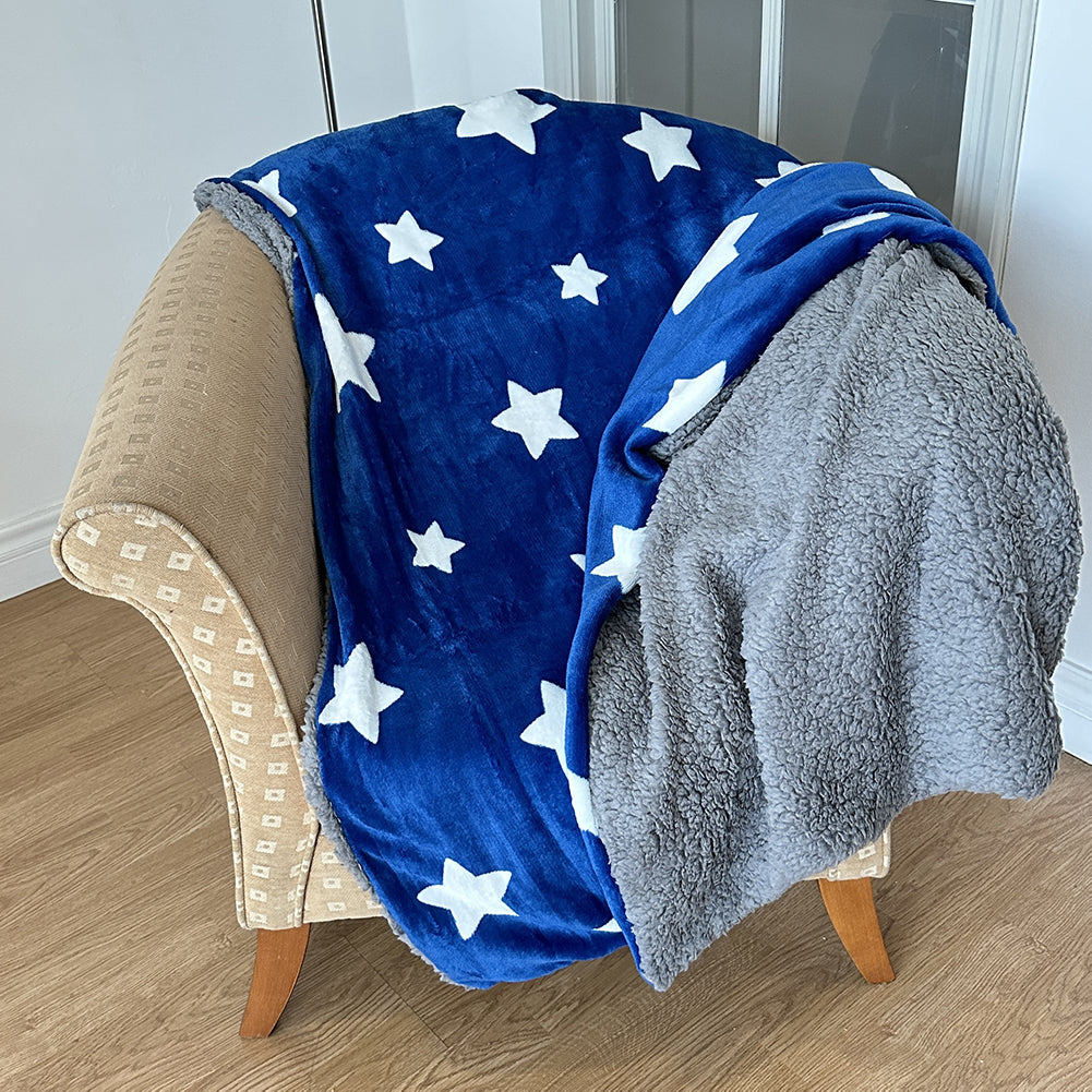 Manta Microcoralina c/ Sherpa Estrelas Azul